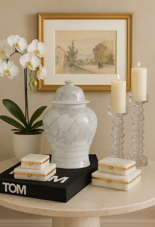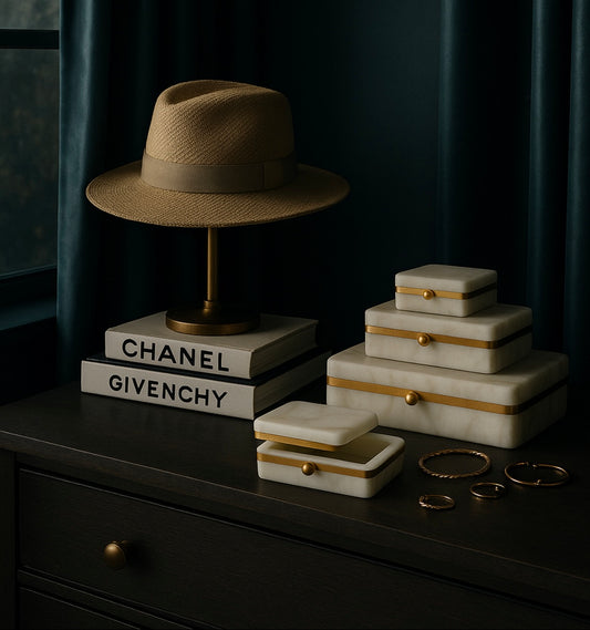Handcrafted Italian Alabaster Boxes with Gold Band Accent — Luxury Home Accent