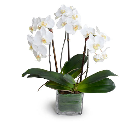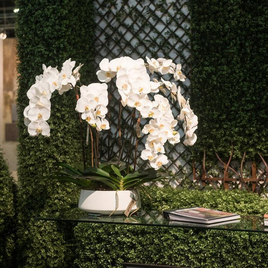 Phalaenopsis Orchid x8 in Porcelain Bowl 32"H