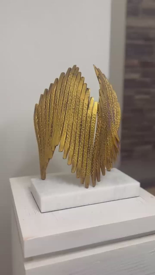 Icarus Winged Sculpture — Iron & Brass Finish on Marble Base