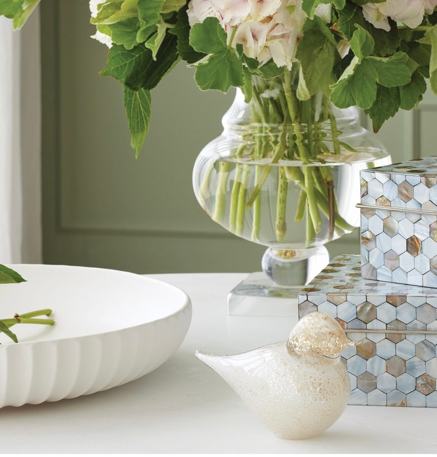 - Soft, curved silhouette suits coastal, transitional, or classic interiors