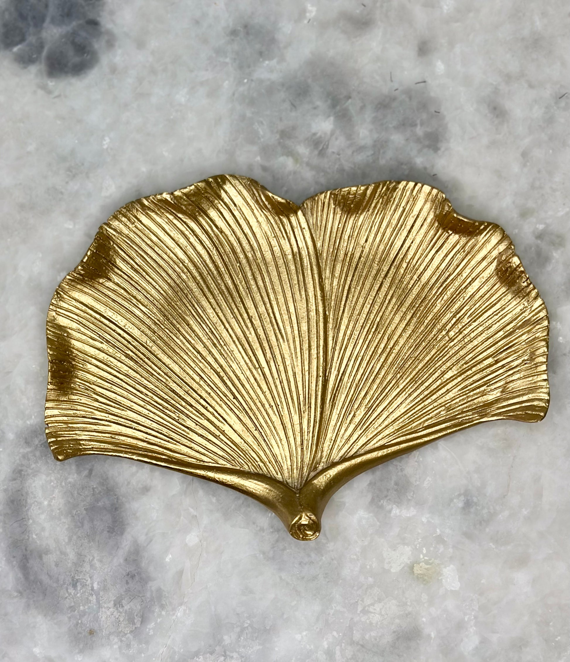 Golden Gingko Leaf Jewelry Dish – Elegant Gold Trinket Tray for Rings, Keys & Decor