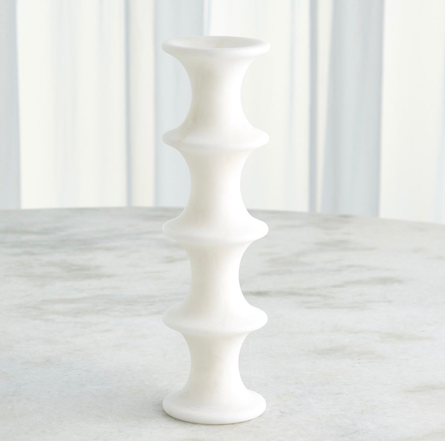 Horizontal fluting compliments the solid alabaster of our Ridge Candlesticks. Designed to hold a tapper or pillar candle, these are beautiful as a stand-alone accent or displayed in a group. As alabaster is a natural product, please be aware that there will always be variations in veining and color. This is to be expected and makes every alabaster product uniquely your own.