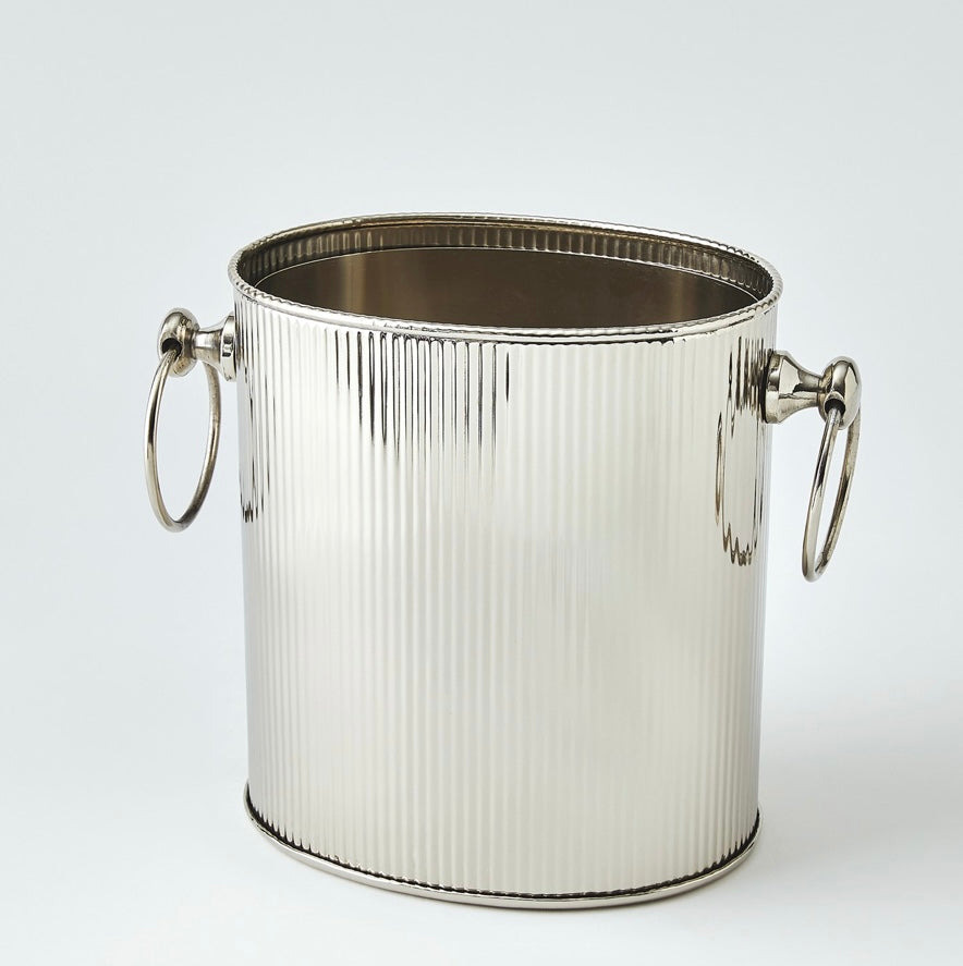 The Winston Ice Buckets are crafted from durable stainless steel with an elegant nickel finish and a sophisticated fluted design. Each bucket includes a removable liner for easy cleaning, perfect for serving chilled drinks at any gathering.